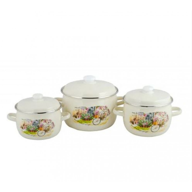 Склад набору :; Каструля сферична 1,5л; Каструля сферична 2,5л; Каструля сферична 3,5л; Матеріал: емальована сталь; БрендIdilia Форма: Сферична Переваги :; Емальований посуд виготовляється зі сталевого листа, а потім покривається жароміцної емаллю, яка була дуже тонкий шар склокераміки, який наноситься на сталеву основу і обпалюється в спеціальних печах .; Такий посуд підходить як для приготування їжі, так і для зберігання готової їжі, сервірування столу і перенесення продуктів .; Емалеві покриття захищає їжу від проникнення іонів металів .; Емальований посуд можна використовувати на всіх типах нагрівальних приладів: газових, електричних і керамічних плитах, мити вручну або в посудомийній машині.