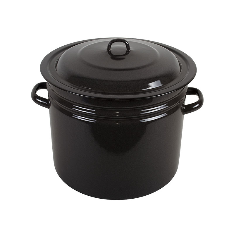 Бак емальований 40 л від виробника Epos ("ТОВ Новомосковський посуд") виготовлений в Україні, товщина стінок становить 1,2 мм, має всередині кремове забарвлення, зовні коричневий. Практичний, є можливість використовувати в посудомийній машинці. Бак емальований 40 л зручний своїми монолітними не нагріваються ручками, підходить для газових, електричних печей.