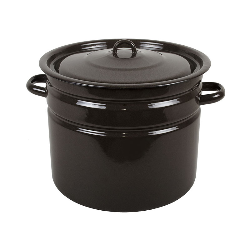 Бак емальований 20 л від виробника Epos ("ТОВ Новомосковський посуд") виготовлений в Україні, товщина стінок становить 1,2 мм, має всередині кремовий забарвлення, зовні коричневий. Практичний, є можливість використовувати в посудомийній машинці. Бак емальований 20 л зручний своїми монолітними не нагріваються ручками, підходить для газових, електричних печей. Діаметр: 33см
