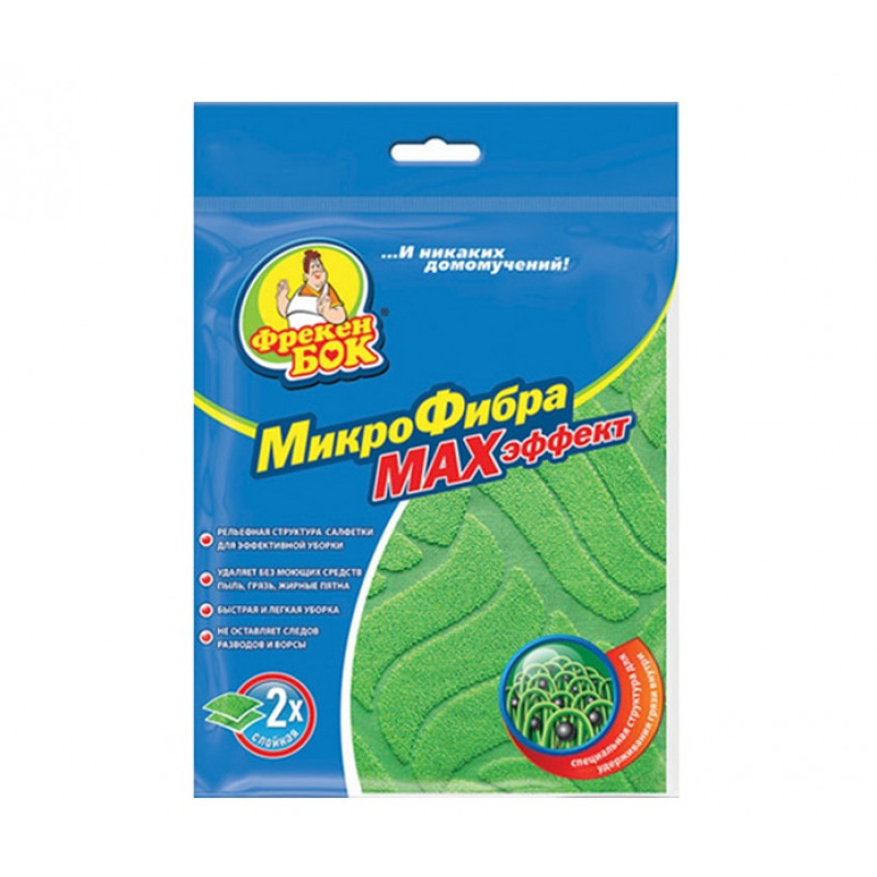 Фрекен БОК Микрофибра MAXэффект - двухслойная салфетка из микрофибры с рельефными зонами. С легкостью удаляет любые загрязнения, при этом не оставляя ворсинок и разводов. Не требует применения моющих средств. Можно использовать как в сухом, так и во влажном виде. После окончания уборки салфетка легко отпирается под горячей проточной водой обычным хозяйственным или туалетным мылом. Салфетку можно стирать в стиральной машине, используя мягкие моющие средства, не содержащие отбеливатели и кондиционеры для воды, без функции отжима в центрифуге.