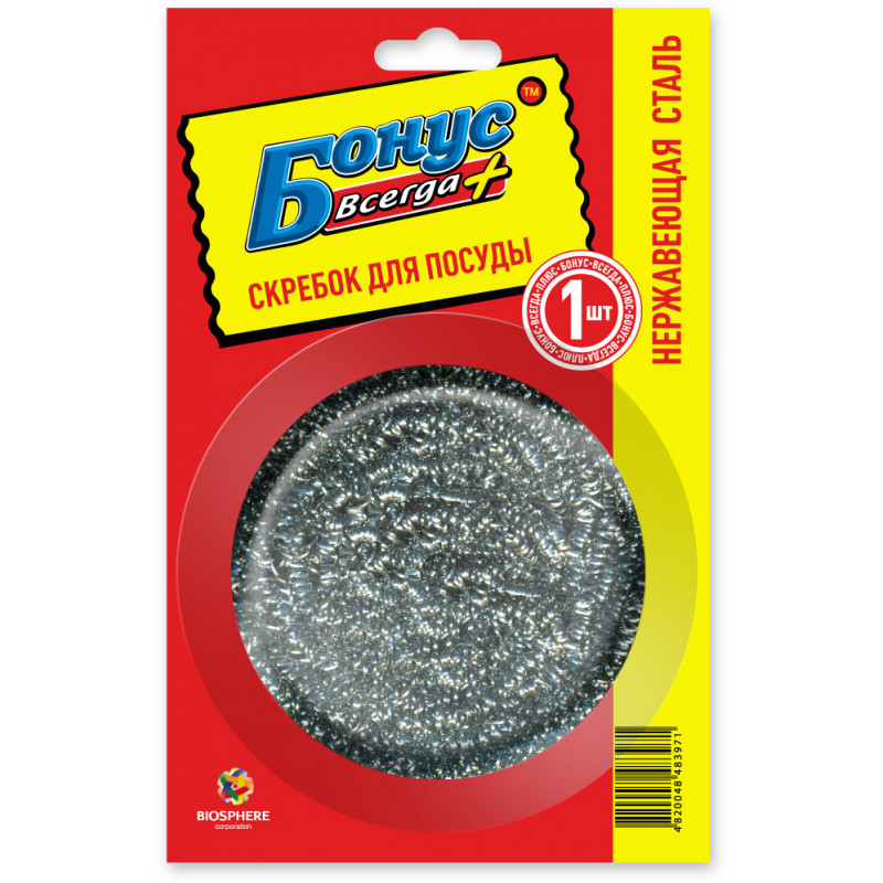 Скребок кухонний БОНУС спеціально призначений для очищення сильно забруднених поверхонь посуду: мисок, каструль і сковорідок. Ефективно видаляє стійкі забруднення. Виріб випускається з нержавіючої сталі і має спіральним плетінням. Скребок Бонус 1 шт