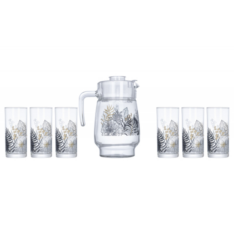 Набір для соку 7пр Amsterdam Palm Springs P4817 Luminarc До складу набору входить: 1 глечик (об'єм 1,6 л); 6 склянок (обсяг 270 мл)