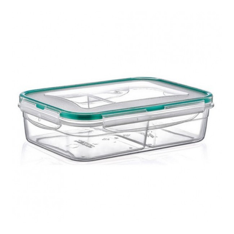 Харчовий контейнер має витончену, ергономічну форму, підходить для домашнього зберігання продуктів, обідів на роботу та до школи. Кришка герметична, не пропускає рідину та запах завдяки гумовому ущільнювачу та надійним фіксаторам. Знімні відсіки дозволяють компактно зберігати продукти, не змішуючи їх.