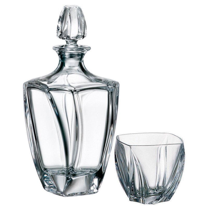 Набір для віскі Bohemia Neptune -7 ін. Виробник: Bohemia, Чехія. Матеріал: прозоре богемське скло. Кількість предметів, шт: 7 (в подарунковій упаковці). Набір Neptune складається з: -6 склянок для віскі (обсяг 300 мл); -1 Карафа (обсяг 650 мл); Правила догляду за виробами з богемського скла: Вироби без декору можна мити в посудомийній машині, користуючись програмою з низькою температурою. Щоб уникнути попадання шкідливого для скла конденсату, після закінчення повного циклу миття, потрібно відкрити дверцята машини. Посуд із богемського скла не призначена для використання в мікрохвильових печах і подачі гарячих страв.