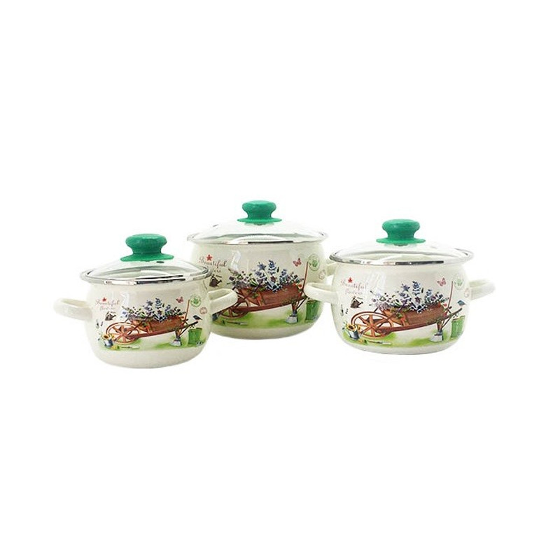 Набір каструль Idilia №6928 Садові квіти 42702 - Зелений металік