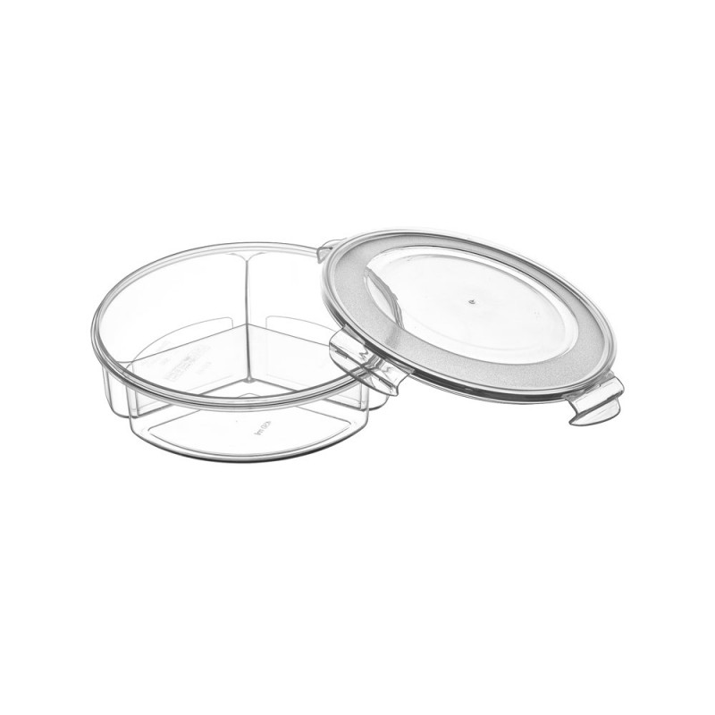 Контейнер герметичний круглий на 3 секції 0,45 л. Виготовлений з якісного харчового пластику. Використовується для зберігання і розподілу продуктів. У контейнері можна розігрівати продукти в СВЧ-печах або заморожувати в морозильній камері.