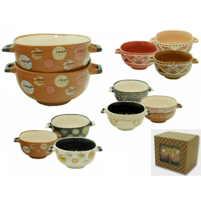 3637-01 Набір мисок з ручками 2 шт (460 мл) Мокко Матеріал - глазурована кераміка. У фірмовій подарунковій упаковці. Діаметр: 12 см. Висота: 6 см.