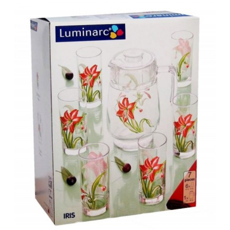 Елегантний набір для соку. Включає в себе 6 стаканів об'ємом 270мл та кувшин об'ємом 1.6л.Зроблені з ударостійкого скла. Поверхня є гладкою та не дозволяє з'явитись плямам та подряпинам. Можна мити в посудомийній машині.