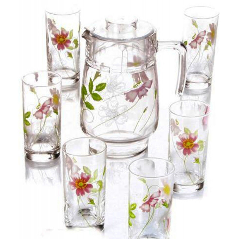 Елегантний набір для соку. Включає в себе 6 стаканів об'ємом 270мл та кувшин об'ємом 1.3л.Зроблені з ударостійкого скла. Поверхня є гладкою та не дозволяє з'явитись плямам та подряпинам. Можна мити в посудомийній машині.