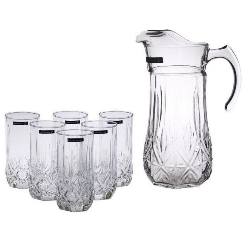 Набір для соку Luminarc SANCY 7пр N0480 Luminarc: 1 глечик (1.6 л) + 6 склянок (340 мл). Виготовлений з ударостійкого скла. Можна використовувати в посудомийках.