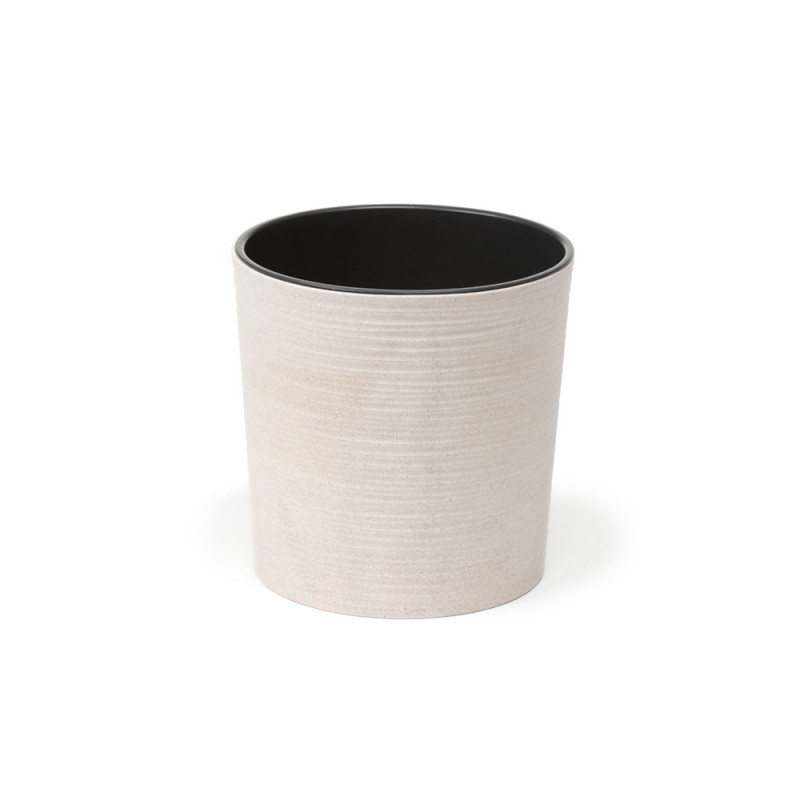 Горщик стійкий до ультрафіолетових променіві має поверхню, що імітує різьблення долотом по дереву. Він складається з двох елементів - декоративного корпусу і чорного вкладу, який може легко вийматися.