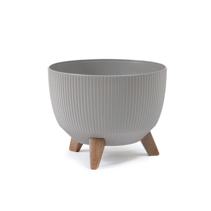 Горщик миса Ламела Рома Джампер EKO Wood 24 см на ніжках 962 елегантного дизайну лофт із смужками виготовлений з додаванням переробленої деревної стружки, що утворюється під час виробництва меблів та інших виробів з дерева. Він виготовлена з високоякісного матеріалу, а ніжки, що входять в комплект, просто і швидко збираються, а також мають вигляд дерева, що надає дизайну додаткової елегантності.