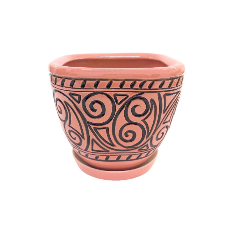 Горщик керамічний КООП Сицилія Завиток Графіт/Корал 17 см 0001