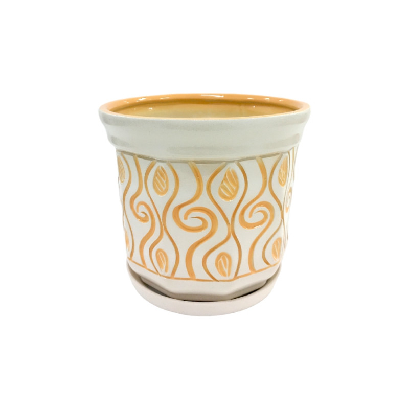 Горщик керамічний КООП Кіто Завиток Помаранч/Крем 9 см 0078