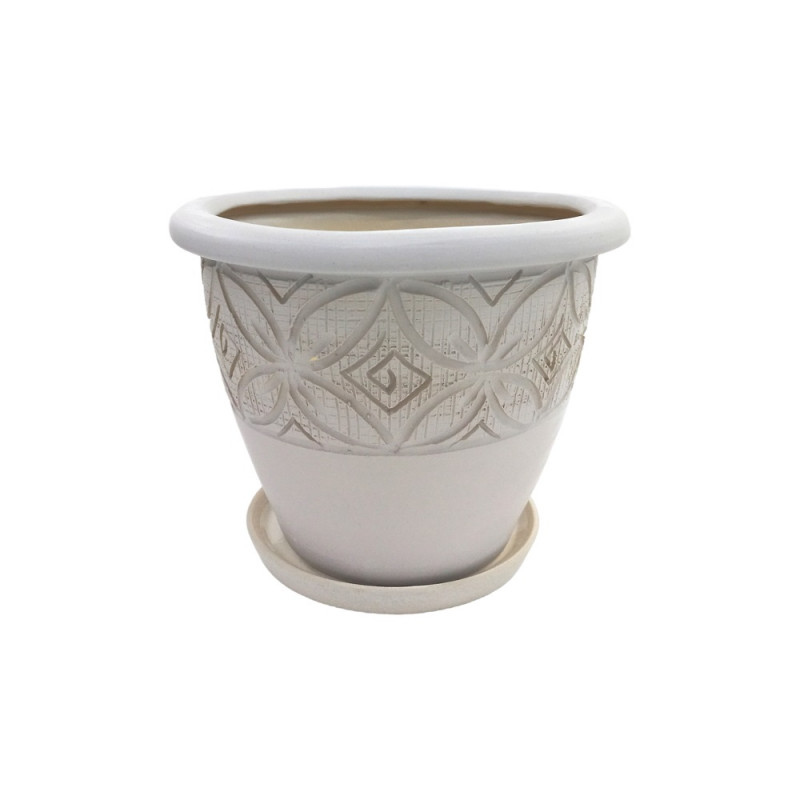 Горщик керамічний КООП Квітка Орнамент Сірий 19 см 0007