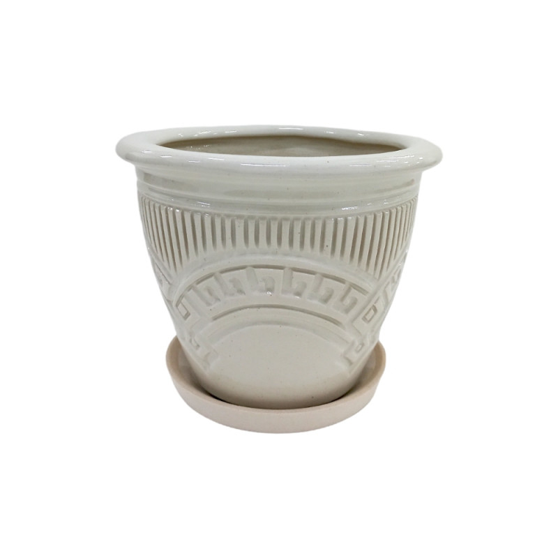 Горщик керамічний КООП Квітка Рим Біла 9 см 0007 - Оливковий