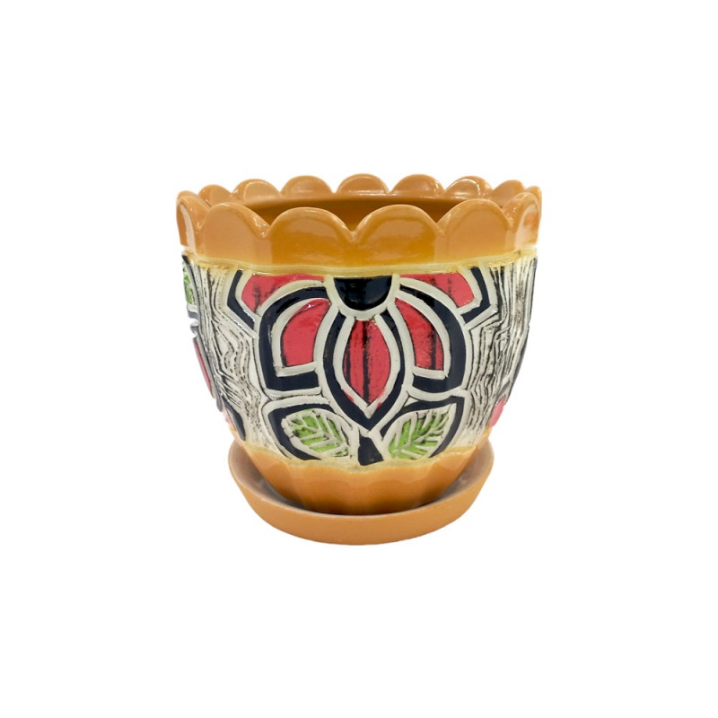 Горщик керамічний КООП Ромашка Квітка Помаранч 11 см 0098
