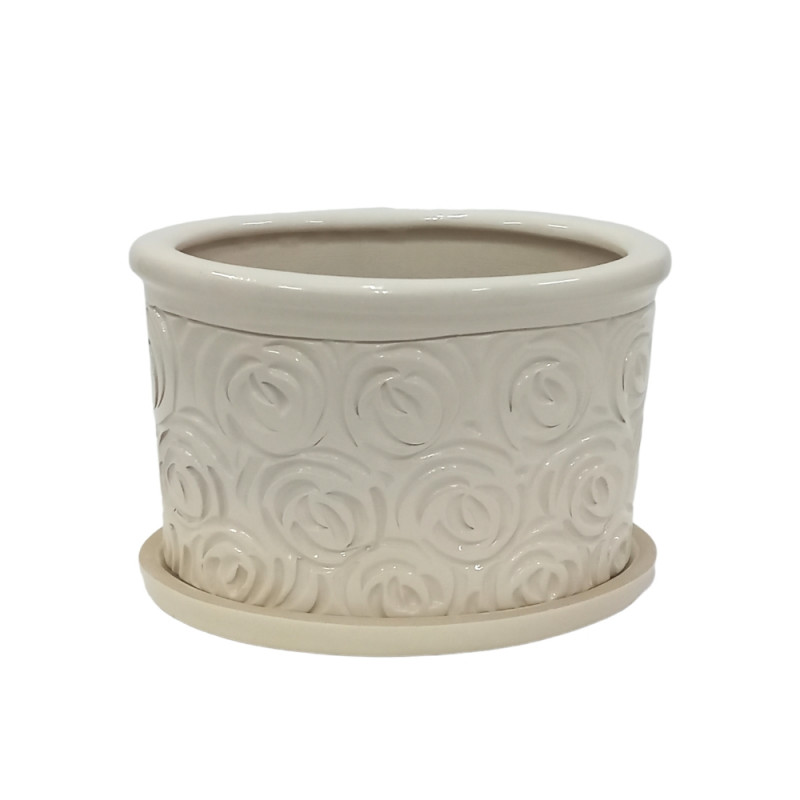 Набір горщиків КООП Орбіта Овал 2 пр h-15/13 см Троянди Кремовий 0168 - Рожевий