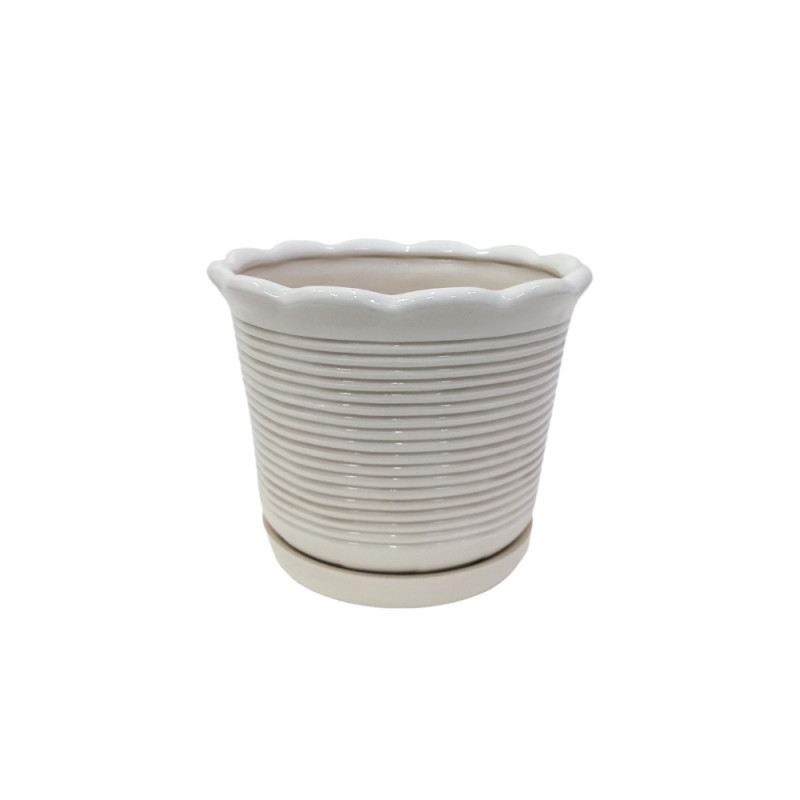 Набір горщиків КООП Дзвіночок 4 пр h-16/14/12/10 см Ребро Білий 0092 - Фісташковий