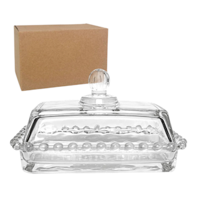 Прозора скляна маслянка — зручна й естетична для зберігання та подачі вершкового масла. Компактна та практична форма.