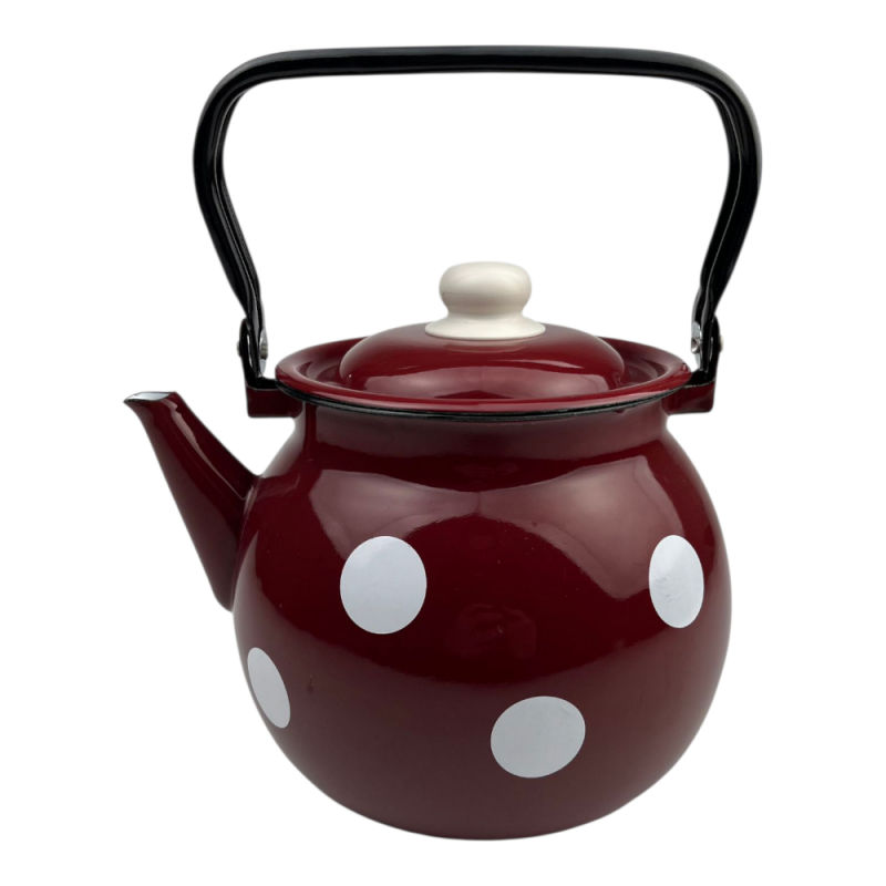 Чайник сферичний Idilia 3,5 л 27130/4 «Білий горох бордо» 43347 — місткий та елегантний посуд для кип’ятіння води вдома, на дачі або для приготування гарячих напоїв для великої родини чи компанії. Об’єм 3,5 л дозволяє швидко приготувати достатню кількість гарячої води для чаю, кави або інших напоїв.