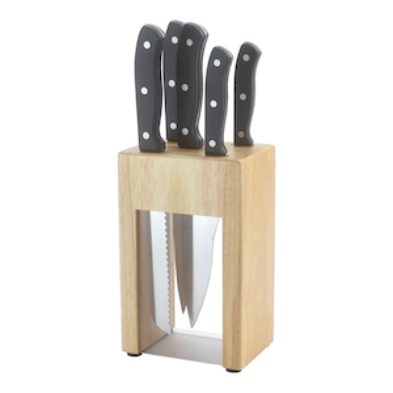 Набір ножів GT-4103 Classic Gusto - це відмінне рішення для тих, хто цінує якісне та функціональне кухонне приладдя. У набір входять 5 ножів різного призначення, які дозволяють легко та швидко обробляти продукти. Ножі виконані з високоякісної нержавіючої сталі, яка не тьмяніє та не іржавіє з часом. Ручки ножів виготовлені із міцного термостійкого пластику, який не ковзає в руці та забезпечує комфортне захоплення. Дерев'яна підставка для ножів дозволяє зручно зберігати та організувати робоче місце на кухні. Вона виконана з якісного дерева, яке не вбирає запахи та не псується з часом.