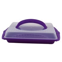Призначена для транспортування різних тортів, кондитерських виробів, тощо. Коробка складається з двох частин - ємність та кришка з ручкою. Кришка фіксується, тому вона не відпаде при перенесенні.