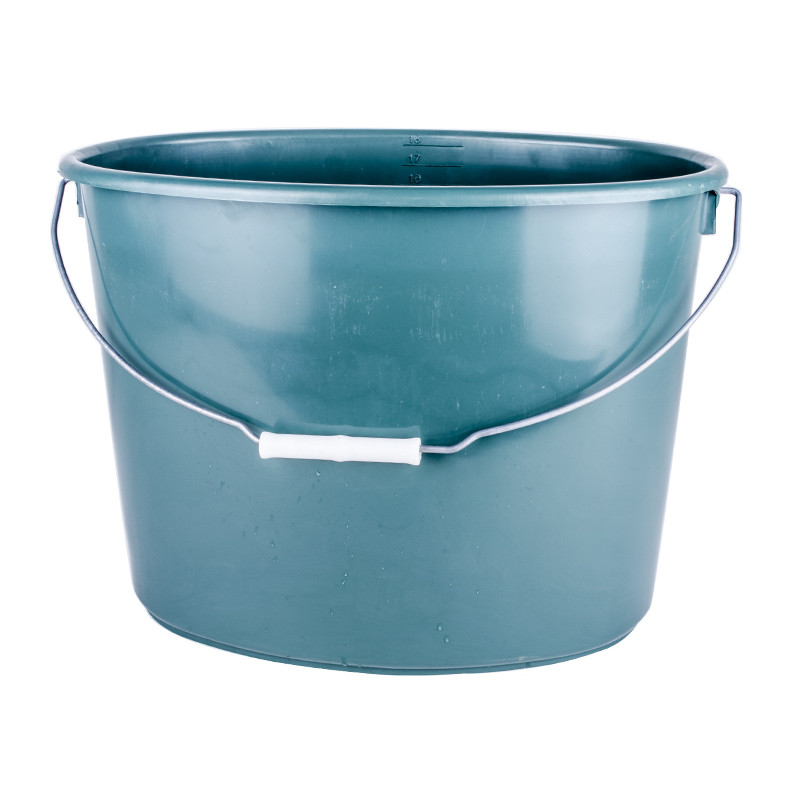 Відро 18л овальне господарське IL-PE виготовлене з вторинної сировини (поліпропілен). Відро має пластикову ручку яка кріпиться на спеціальні «вушка». Відмітка про літри всередині відра позначена до 10л.