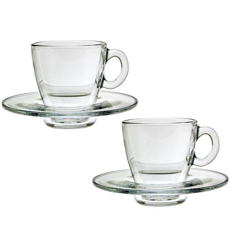 До набору входить 6 чашок об'ємом 72мл з блюдцями. Вони призначені для гарячиих напоїв, таких як кава, тощо. Завдяки своєму дизайну, підійдуть для будь якої сервіровки столу. Міцне, якісне скло не схильне до драпання та є ударостійкішим, у порівнянні зі звичайним. Їх можна мити в посудомийній машині.