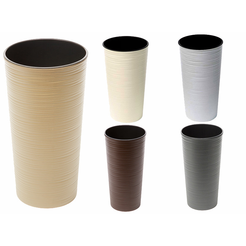 Він складається з двох елементів - декоративного корпусу і чорного вкладу, який може легко вийматися. Без контейнера кашпо може бути використане як ваза для живих або штучних квітів. Для відводу надлишку води передбачений дренажний отвір.