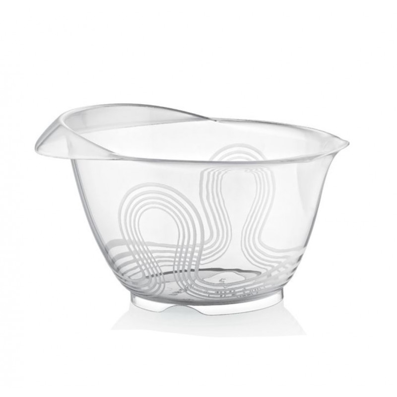 Її конструкція має невелике поглиблення для зручного захоплення рукою, що є позитивним і комфортним моментом використання чаші в роботі. А з протилежного боку є носик, який не дасть вмісту розлитися під час переливання. Відмінно підходить для збивання міксером, а за рахунок високих стін зручно змішувати продукти, не боячись розбризкати. Незамінна річ тим, хто любить готувати.