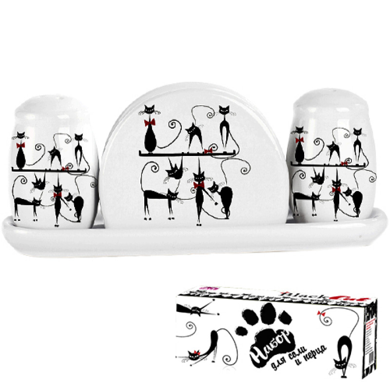 Набір для солі і перцю SNT з серветницею Мурчики 6912-19