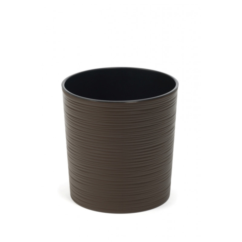 Горщик терасний Ламела Мальва Долото 30 см з вкладом 723 має сандартну форму, але також незвичайну поверхню, що імітує різьблення долотом по дереву. Він складається з двох елементів - декоративного корпусу і чорного вкладу, який може легко вийматися. Без контейнера кашпо може бути використане як ваза для живих або штучних квітів. Для відводу надлишку води передбачений дренажний отвір.
