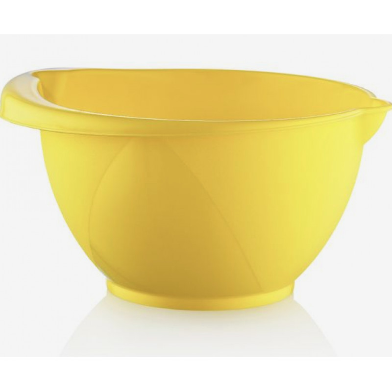 Ее конструкция имеет небольшое углубление для удобного захвата рукой, что является положительным и комфортным моментом использования чаши в работе. А с противоположной стороны есть носик, который не даст содержимому разлиться во время переливания. Отлично подходит для сбивания миксером, а за счет высоких стен удобно смешивать продукты, не опасаясь разбрызгать. Незаменимая вещь для тех, кто любит готовить.