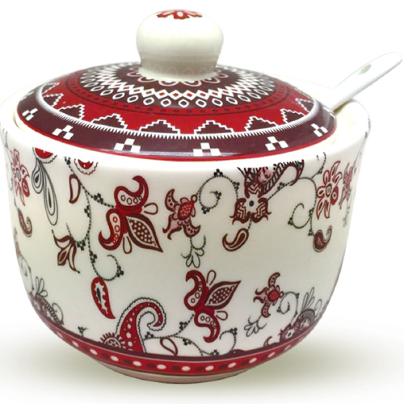 Цукорниця з ложкою SNT 450 мл Орнамент 2242-15 - Бордовий
