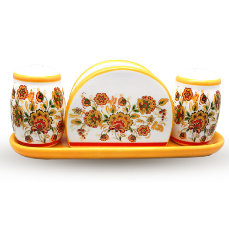 Набір для солі і перцю з серветницею Квітковий розпис SNT 6912-16 - Лосось
