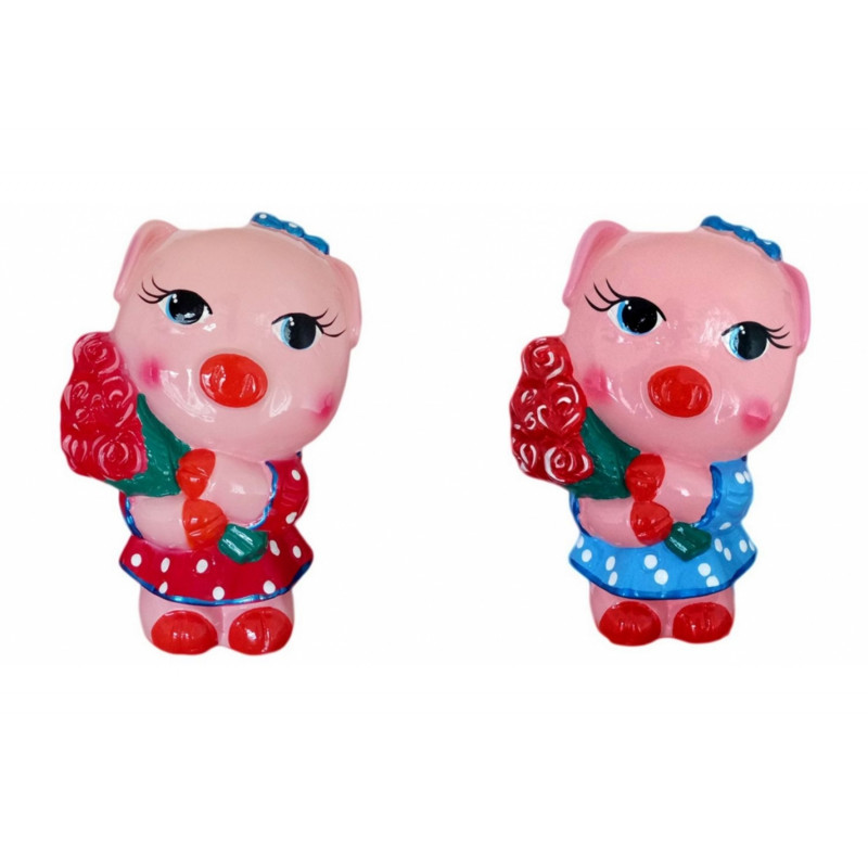 Копілка Свинка з квітами глянець велика КЛС-19886 - Сливовий