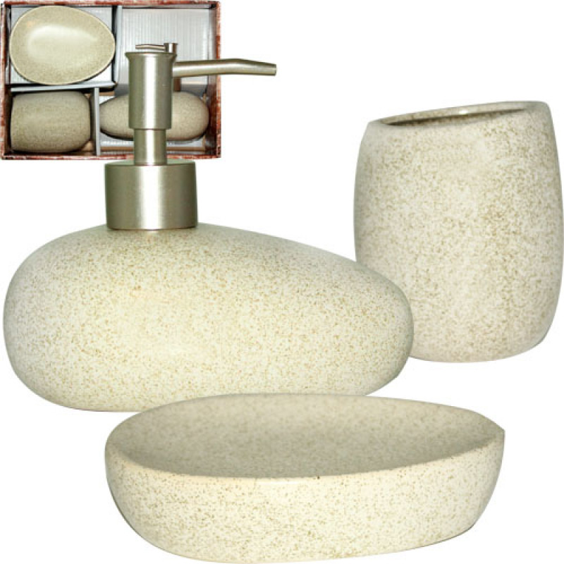 Керамічний набір "Loft" для ванної кімнати. Колір бежевий. В комплекті 3 предмета: дозатор для рідкого мила, стакан для зубних щіток і мильниця. Набір аксесуарів для ванної кімнати упакований в картонну коробку з блістерної кришкою. Набір аксесуарів для ванної кімнати SNT 3 пр Loft 887-09-01