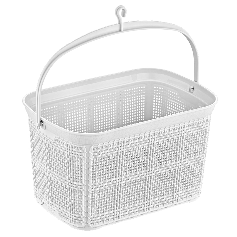 Форма кошика прямокутна, обладнана рухомою ручкою для зручного перенесення.