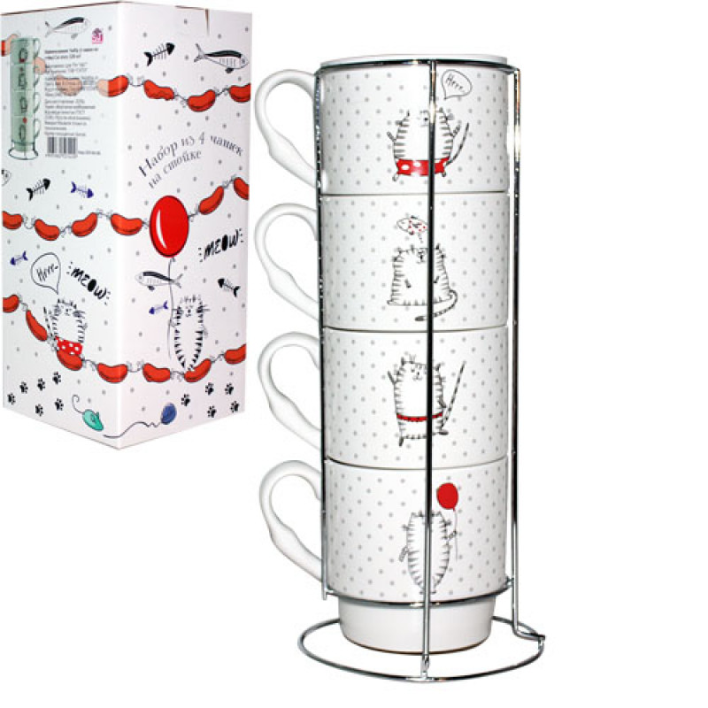 Набір 4 чашки на стійці 320 мл SNT Cat story 021-04-06
