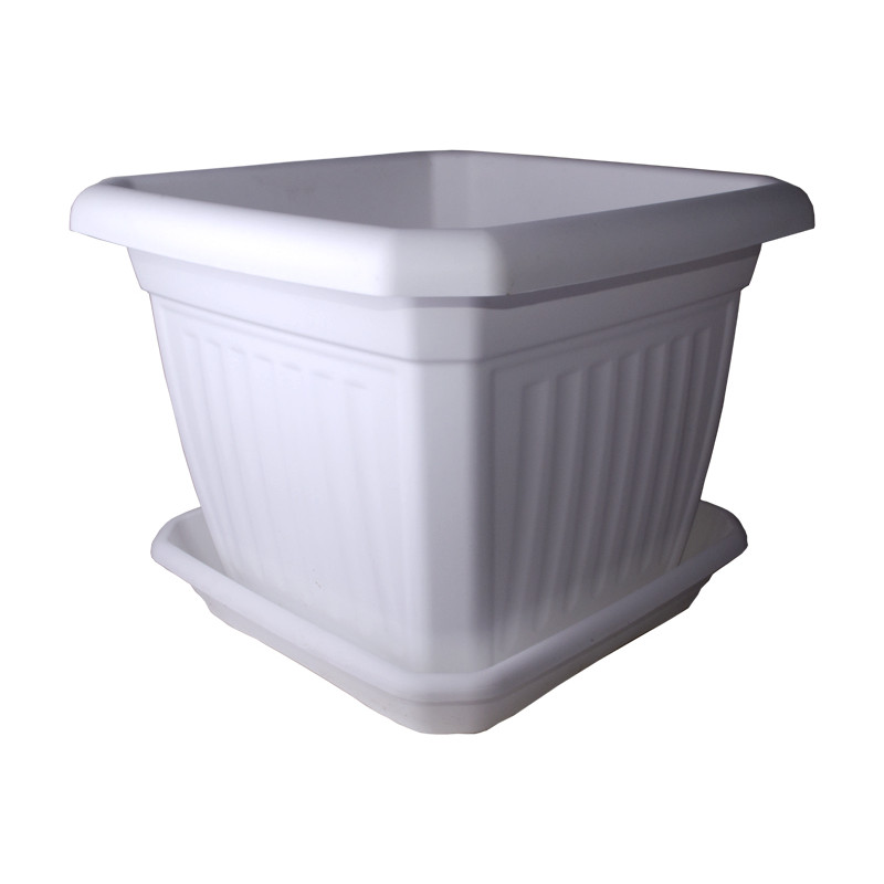 Горщик для квітів IL-PE Квадратний 20/17,5 см з підставкою - Білий