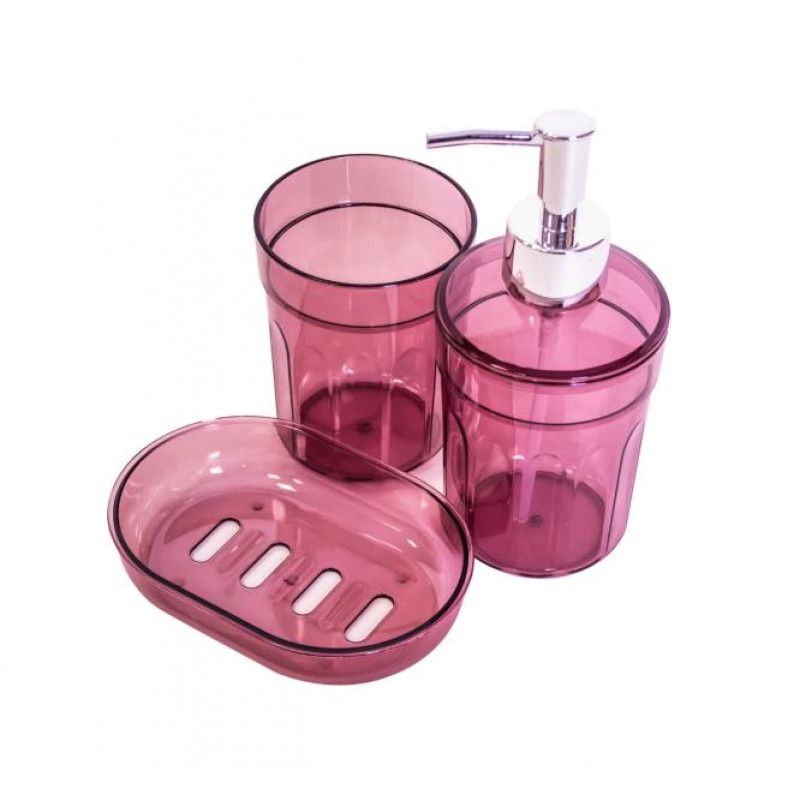 Набір аксесуарів для ванної 3 пр Eco Fabric Moon Прозорий Бордовий TRL-2032-ТМ - Білий