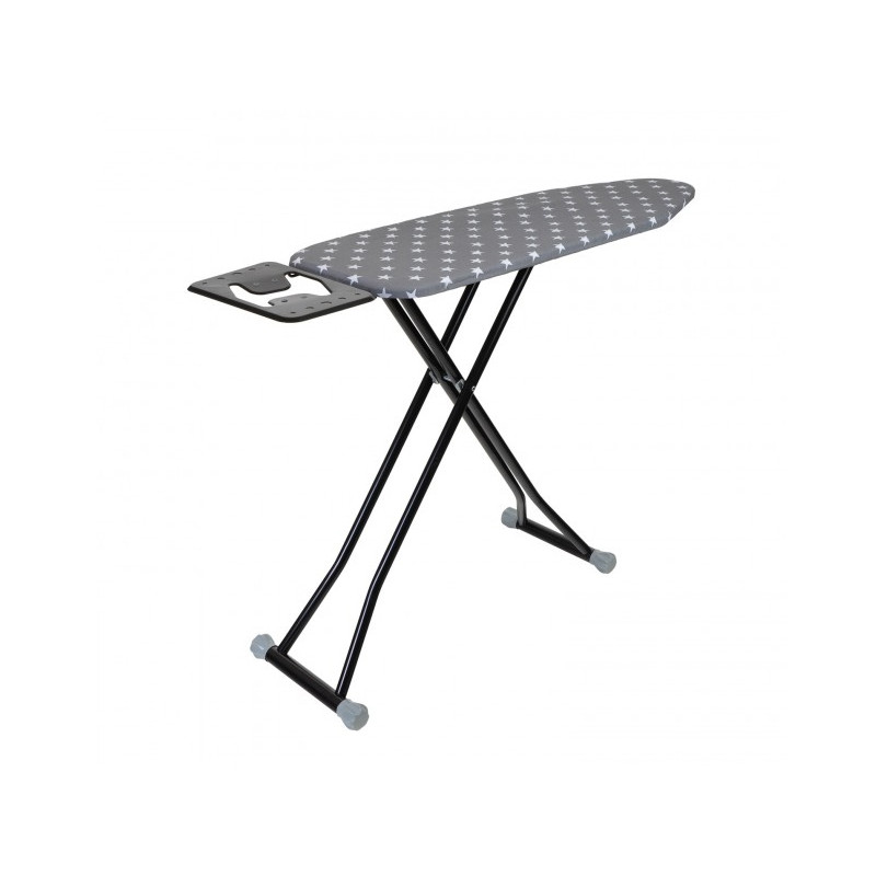 Прасувальна дошка HOUSEPLUS IB-1005 оснащена зручною підставкою для праски зі спеціальними силіконовими вставками. Міцні сталеві ніжки укомплектовані пластиковими наконечниками, які додають конструкції стійкості та захищають покриття від пошкоджень. Електростатичне порошкове напилення продовжує термін експлуатації виробу.