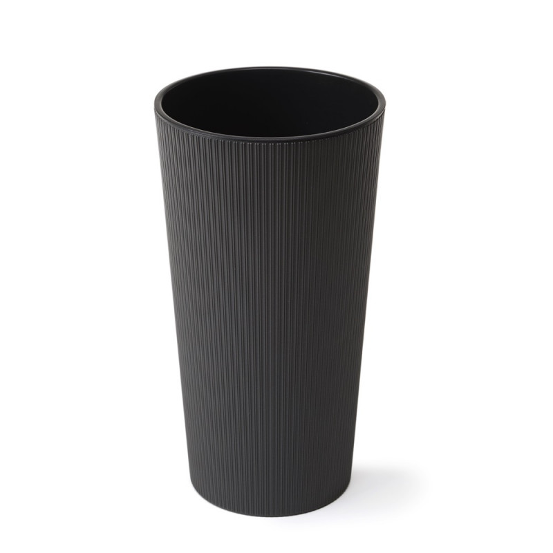 Горщик стійкий до ультрафіолетових променів та складається з двох елементів - декоративного корпусу і чорного вкладу, який може легко вийматися. Без контейнера кашпо може бути використане як ваза для живих або штучних квітів. Для відводу надлишку води передбачений дренажний отвір.