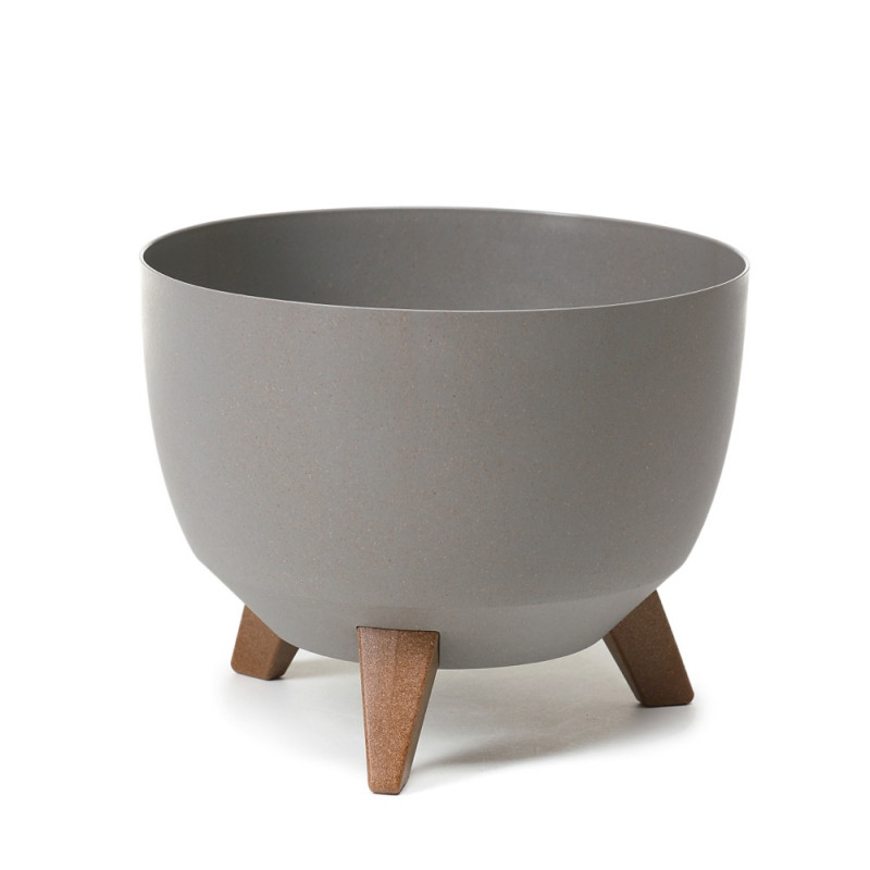 Горшочек мыса Ламела Рома ЭКО Wood 47 см на ножках 922 элегантного дизайна лофт изготовлен с добавлением переработанной древесной стружки, образующейся при производстве мебели и других изделий из дерева. Она изготовлена из 100% переработанного, высококачественного пластика, а входящие в комплект ножки просто и быстро собираются, а также имеют вид дерева, что придает дизайну дополнительную элегантность.