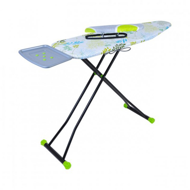 Стійкість конструкції забезпечують Т-подібні ніжки із пластиковими наконечниками. У комплекті з дошкою для прасування TOMRIS йде посилена підставка з силіконовими вставками, яка підходить для праски з парогенератором. Спеціальне електростатичне порошкове покриття не піддається руйнівному впливу ультрафіолету та корозії.