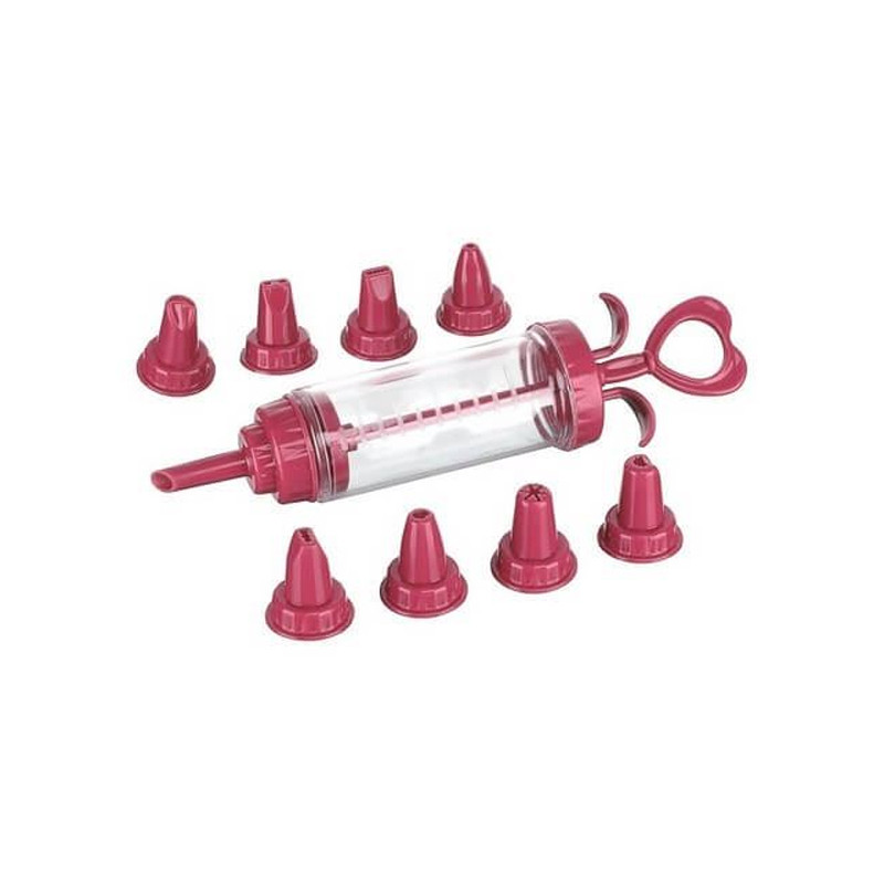Кондитерський шприц AP-1004 з насадками призначений для приготування різноманітного печива, еклерів, прикраси та декорування кондитерських виробів у домашніх умовах або на кондитерському виробництві. Завдяки цьому кулінарному аксесуару можна надати необхідну форму тесту. Кондитерський шприц виготовлений із високоякісного, харчового пластику. Кулінарний шприц у комплекті має вісім насадок.